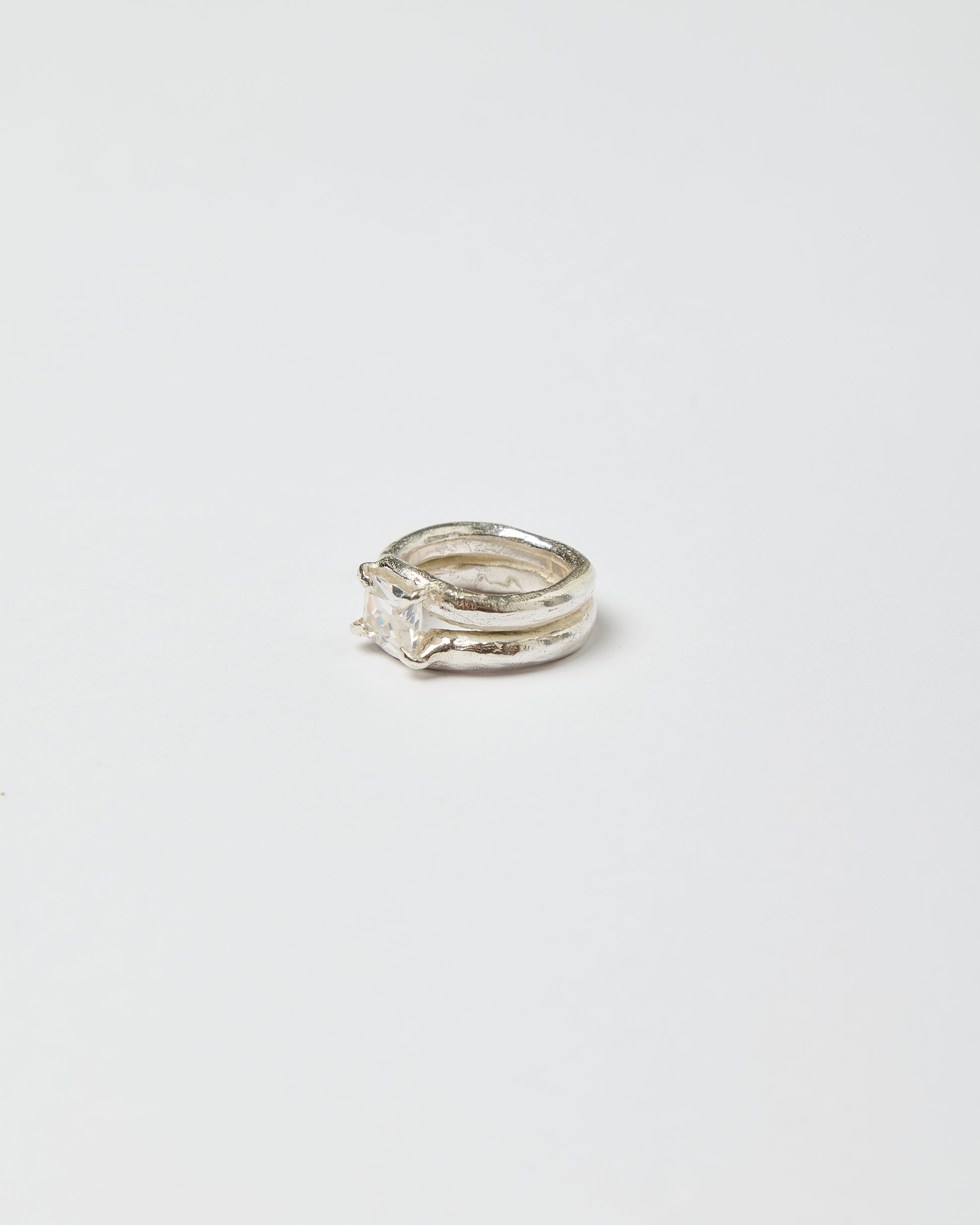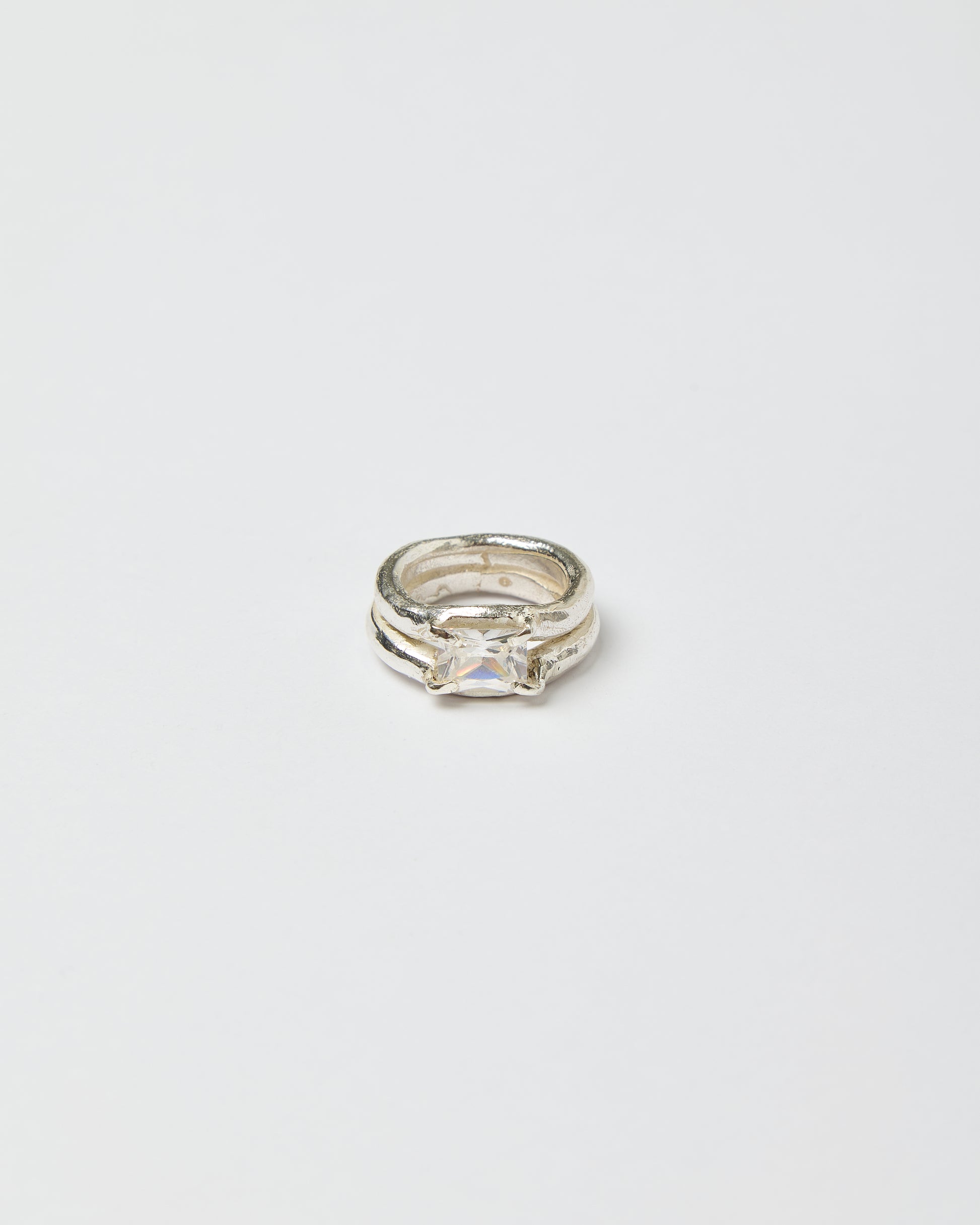 Anillo de doble cuerpo con piedra de corte rectangular.